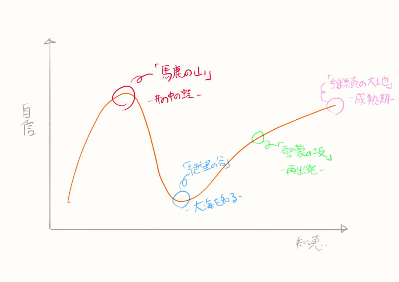 おそらく超ミクロで考えた時にいわゆるダニングクルーガー効果でいう馬鹿の山にちょうど差し掛かっていると思われる。まぁどちらかと言えば新しい世界に入って全てが新鮮だから全てが楽しく感じるってだけなんだけど